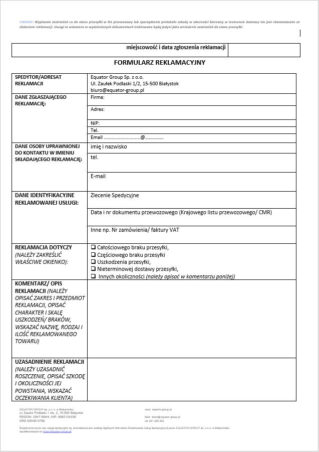 Formularz reklamacyjny